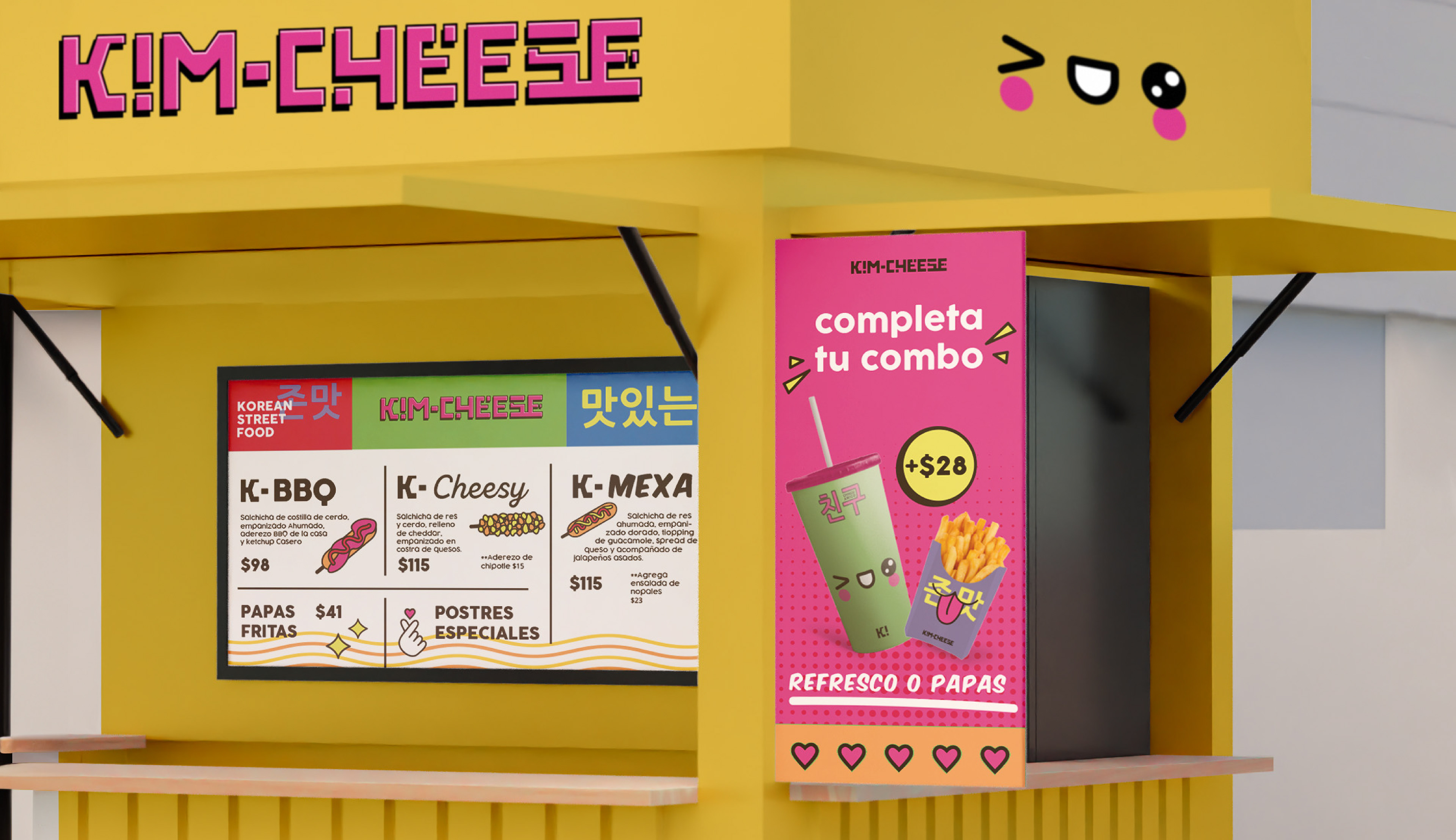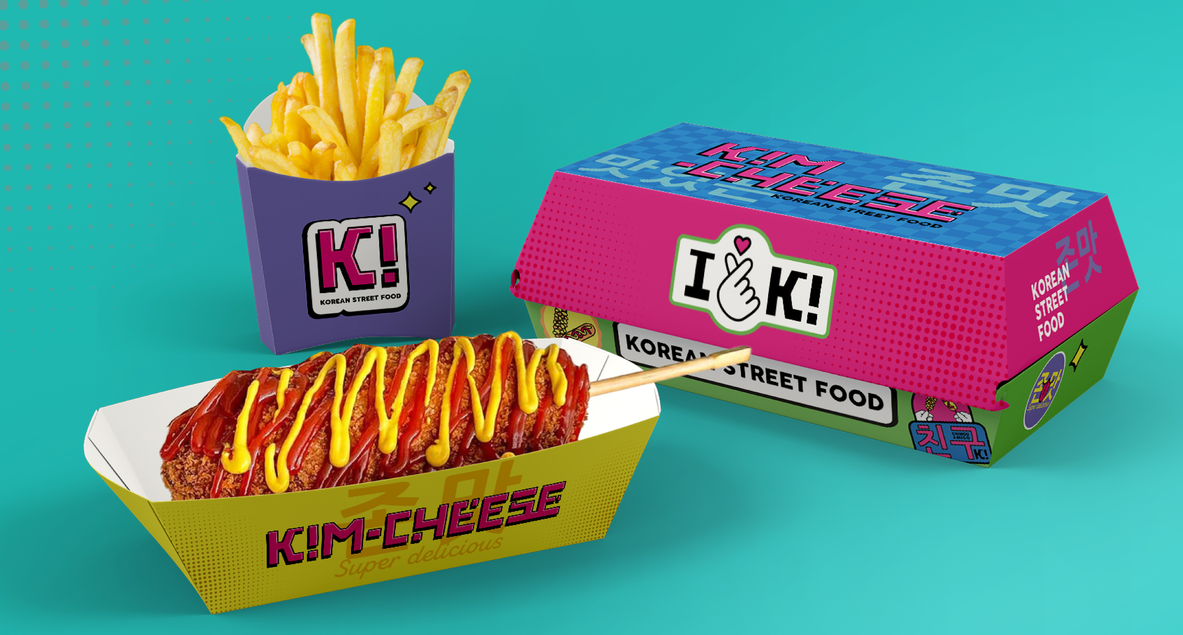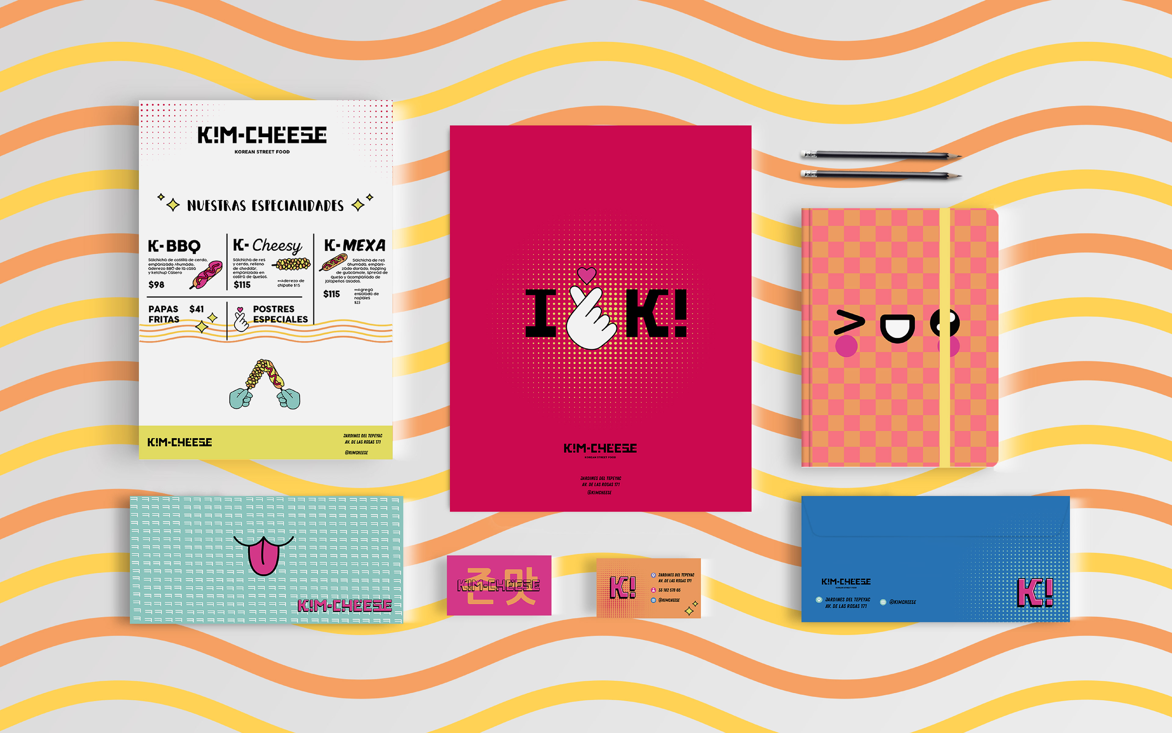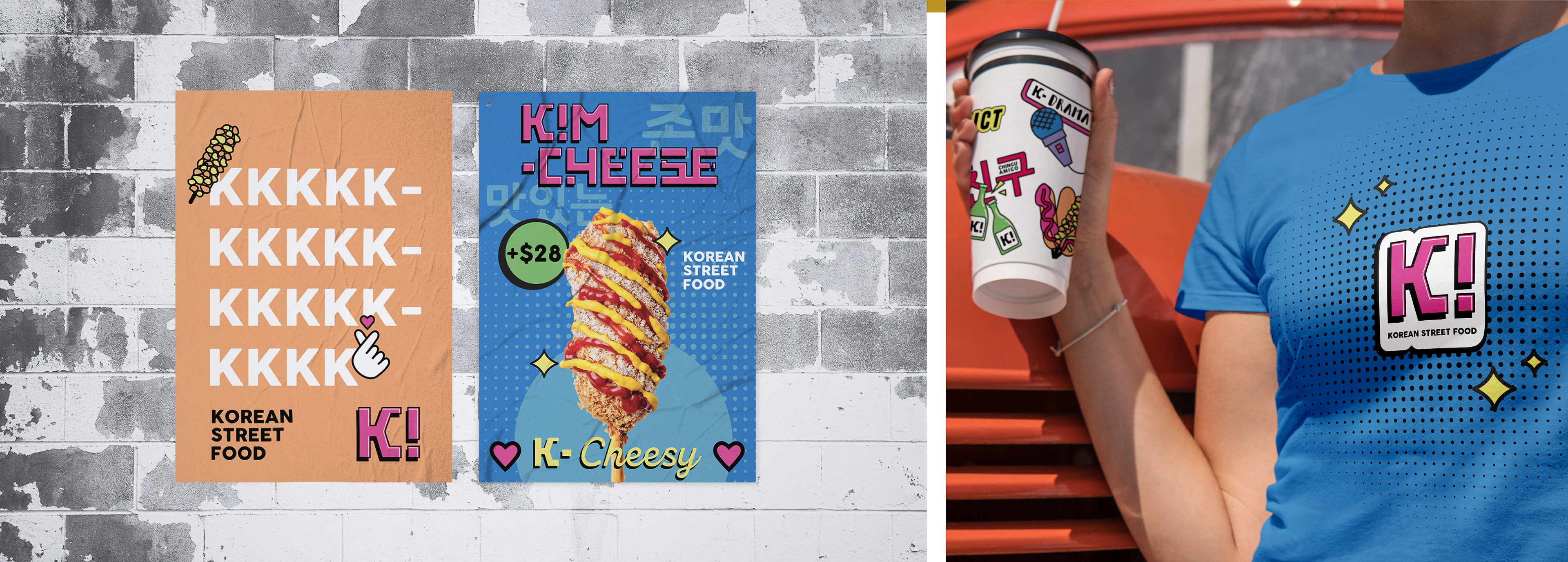 Inspired by the effervescence of K-Pop and the nostalgia of the 90s, we've crafted a visual identity that encapsulates the essence of Korean pop culture fused with an urban and playful touch. From the choice of saturated colors to the Asian typography, each element is carefully designed to transport consumers to a universe of flavors and memories. Our aim is to create a complete sensory experience that not only satisfies cravings but also invites exploration and shared moments with friends. This project not only embodies a passion for design but also a love for culture and creativity that defines our brand. Get ready to taste the difference and dive into the colorful world of our Korean skewers!
